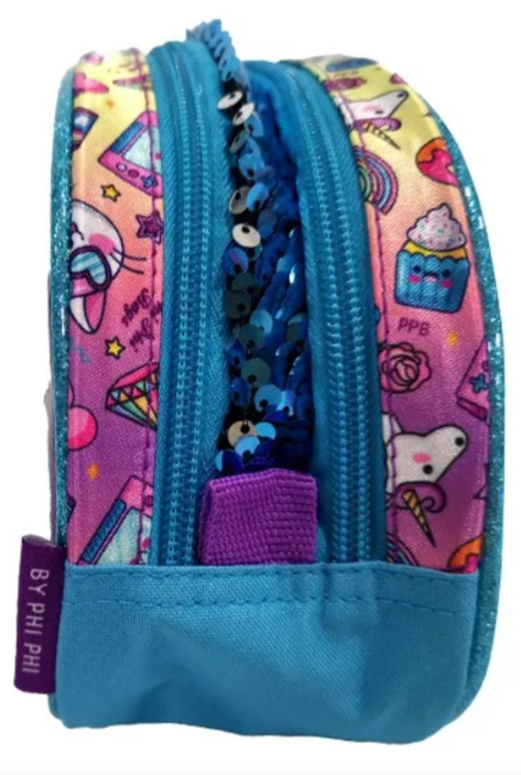 Cartuchera Phi Phi Bags Gatito Unicornio 2 Cierres