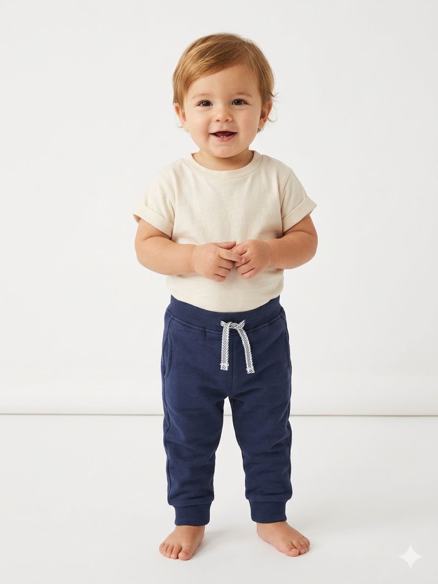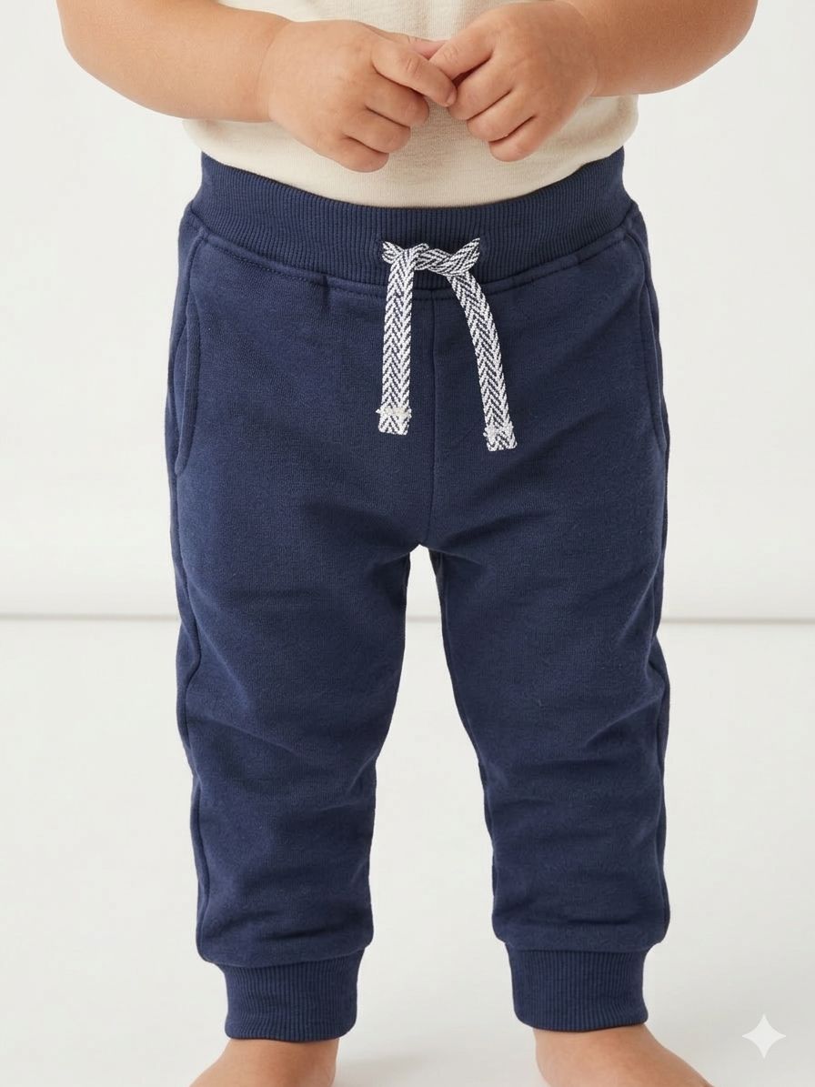 Pantalón infantil de tela deportiva con felpa, 100% algodón, suave y cómodo.