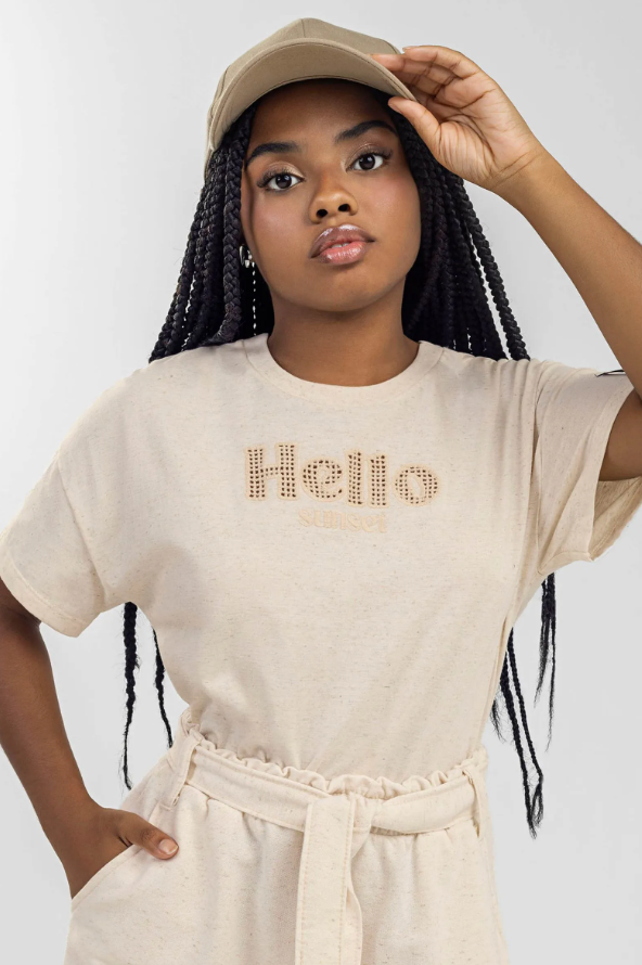 Remera Juvenil Femenina Bordada Beige
