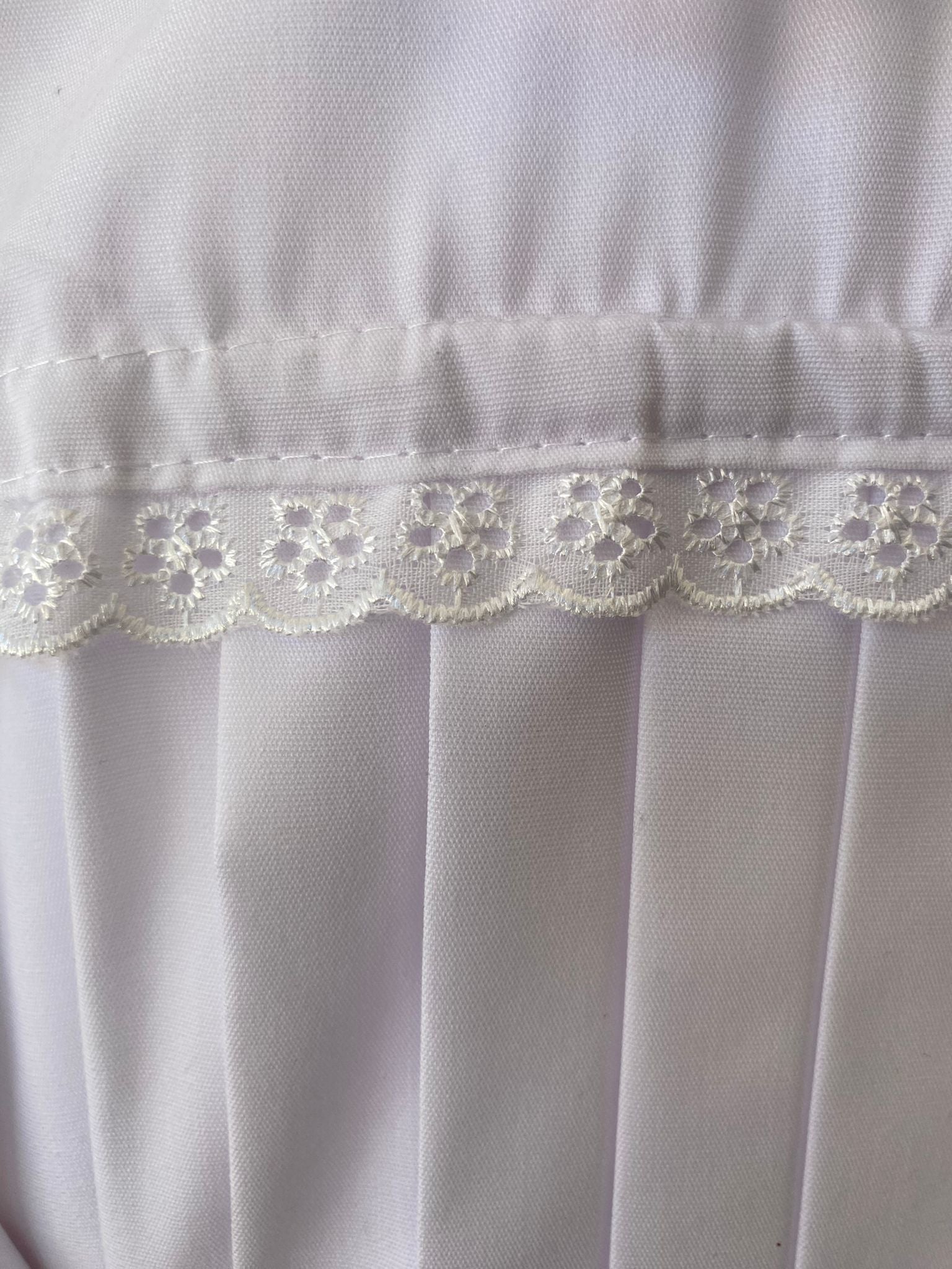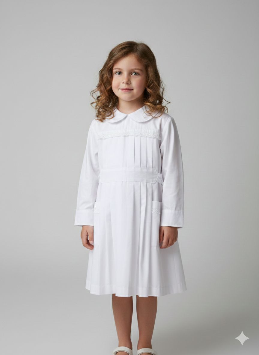 Túnica escolar de niña confeccionada en tela suave y resistente, ideal para el uso diario. Su diseño clásico se realza con una delicada puntilla que aporta un toque femenino y elegante, sin perder comodidad ni practicidad.